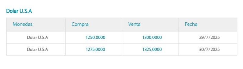 El BNA había cerrado la cotización el lunes en $1.305 pesos y luego de las tasas convalidadas por el Gobierno, el martes la cotización se ubicó en $1.300.