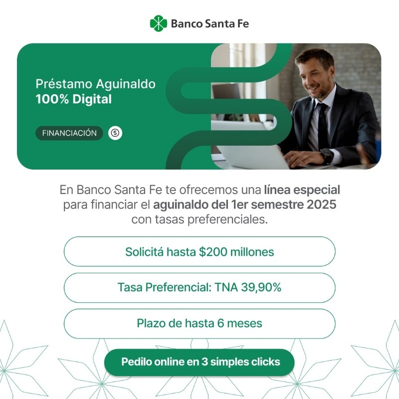 Con el objetivo de seguir acompañando a las empresas y pymes de la región, Banco Santa Fe puso a disposición una nueva línea exclusiva de Préstamos Aguinaldo.