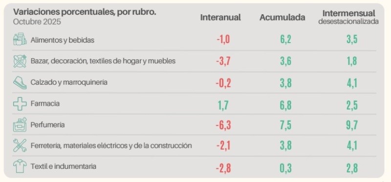 En octubre, las ventas minoristas pymes mostraron una leve mejora mensual, aunque continuaron por debajo del nivel del año anterior. La mayoría de los rubros registró caídas interanuales, con “Perfumería” y “Bazar y decoración” entre los más afectados.