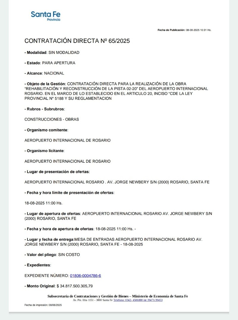 Es por eso que, amparado en la normativa, decidió ir por una adjudicación directa, estimando que era la mejor forma de no perder (el proyecto ejecutivo aprobado, la vistas de los interesados, etc) el camino realizado, entendiendo que arrancar de cero con una nueva licitación retrasaría todo, cuando el objetivo central es que el Aeropuerto no se pierda la temporada alta de enero y arranque 2026 con una nuevo escenario más provechoso.