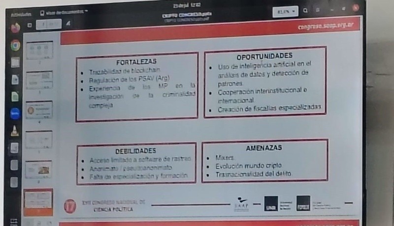 Allí se presentó el “Programa de Estudio Interdisciplinario sobre Prevención y Persecución de la Criminalidad Económica”, que ya se viene realizando capacitando a integrantes de Fiscalías, Tribunales, Organismos de Gobierno y hasta personal de las fuerzas de seguridad, y que ahora tiene, precisamente, como una línea de investigación el tema de los criptoactivos.