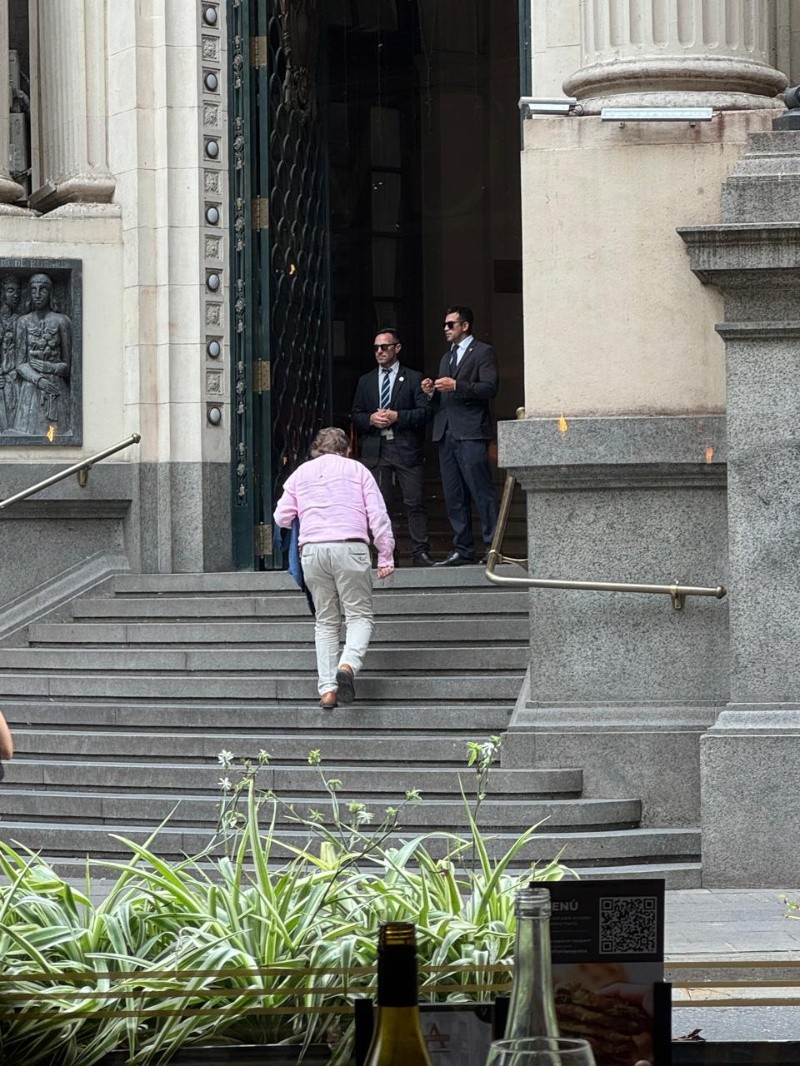 Ángel Ghirardi ingresando a la Bolsa para ir a votar