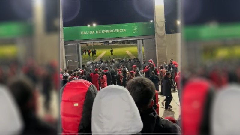 Hubo balas de goma, golpes de puño y algunos cruces justo cuando los rojinegros arribaban al estadio Único de San Nicolás.
