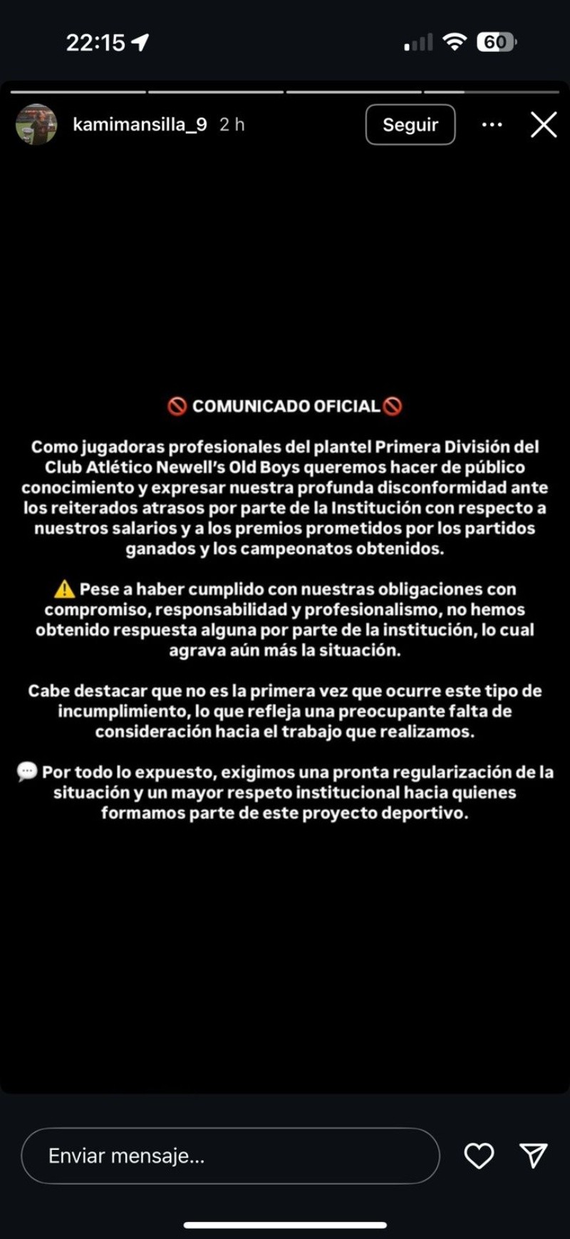El comunicado finaliza con un pedido concreto: “Exigimos una pronta regularización de la situación y un mayor respeto institucional hacia quienes formamos parte de este proyecto deportivo”.