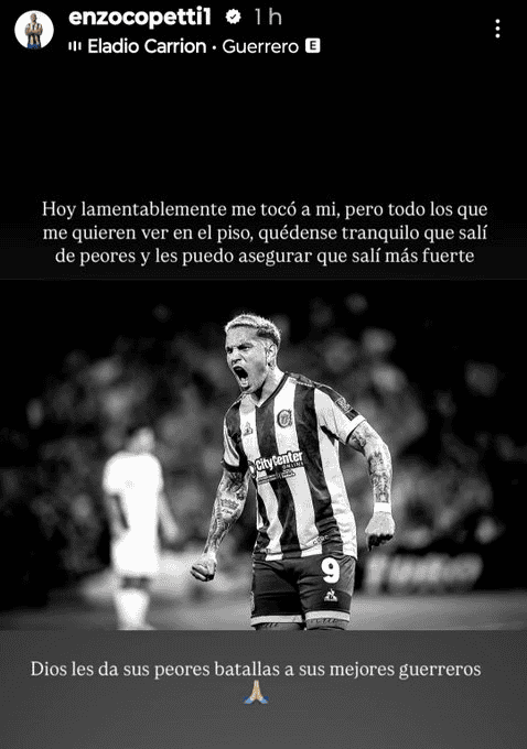 Algunas horas después del video viralizado, el mismo jugador publicó una historia a través de su Instagram con una foto en blanco y negro y un texto que decía: "Hoy lamentablemente me tocó a mí, pero todo que me quieren ver en el piso, quédense tranquilo que salí de peores y les puedo asegurar que salí más fuerte. Dios le da sus peores batallas a sus mejores guerreros".