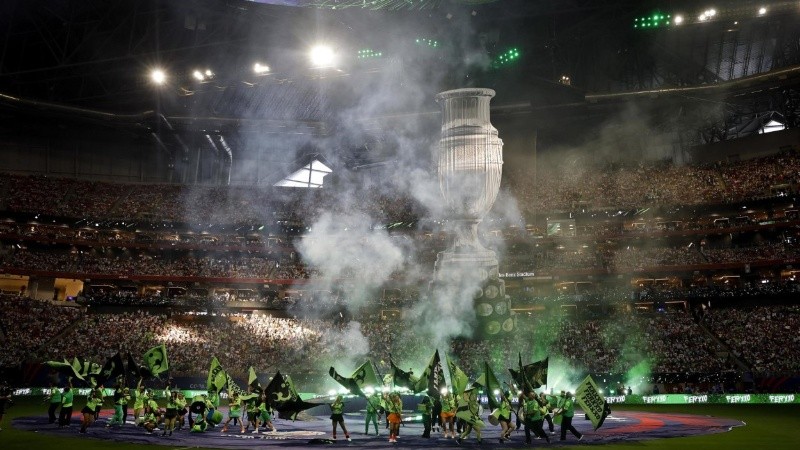 Argentina comenzó la defensa del título de campeón de América. En la previa, y mientras el moderno estadio se iba completando de hinchas argentinos, en los carteles apareció él: Diego Armando Maradona.
