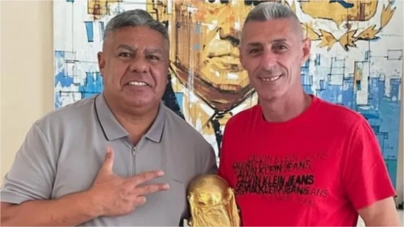 El mandamás de AFA lo visitó en su casa de Funes en 2023, lo acompañó cuando bautizaron "Claudio Tapia" una calle en la localidad santafesina de Sargento Cabral y la semana pasada el candidato a presidente de Newell's apareció en un video cuando le llevaron una mesa personalizada con la Copa del Mundo a Tapia.
