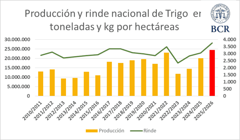 Si se cumplen las proyecciones, a medida que avanza la cosecha, el actual ciclo superaría al anterior récord por un 6,5% en producción y por 2,7 qq/ha en el rinde promedio nacional