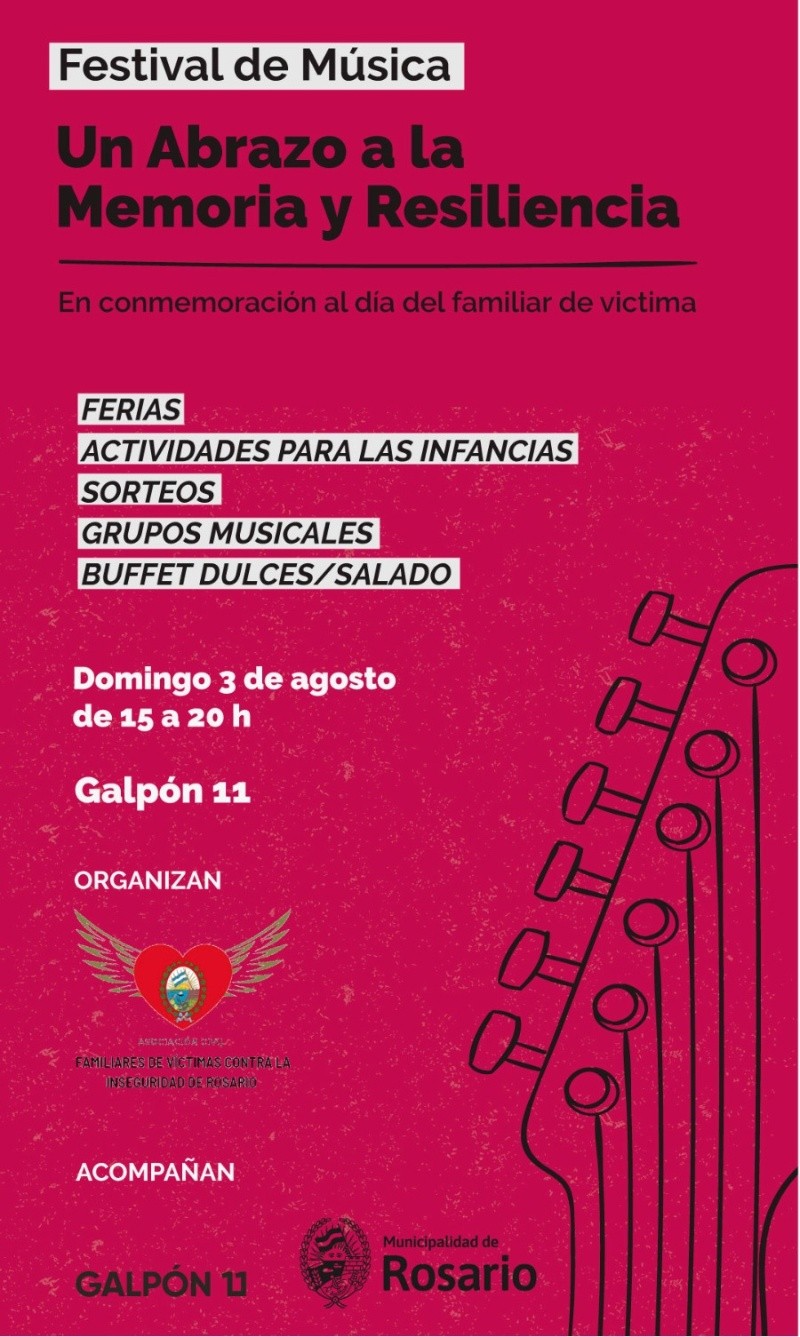 "Este festival es una forma de transformar el dolor en lucha colectiva, visibilizar las ausencias y celebrar la vida desde la memoria activa. Un homenaje cargado de emoción, arte y compromiso, abierto a toda la comunidad", informaron desde la Asociación Civil Familiares de Víctimas contra la inseguridad de Rosario.