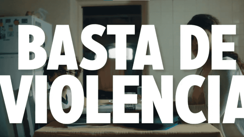 Sobre el final de la frase aparece el video del intento de magnicidio contra la expresidenta y tanto el nene como su mamá se miran en silencio mientras en la pantalla aparece la frase “basta de violencia”.