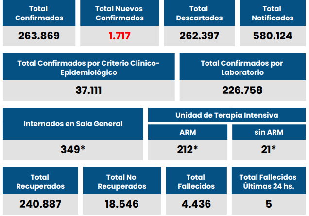 Hasta la fecha se registra un total de 4.436 personas que contrajeron coronavirus y murieron en la provincia.