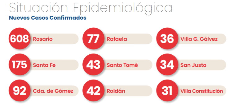 En cuanto a los infectados por localidades, Rosario sigue como el principal foco, segunda aparece Santa Fe con 175 casos y luego Cañada de Gómez con 92, por encima de Rafaela (77).