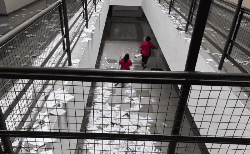 El episodio tuvo lugar el jueves pasado y comenzó a circular en redes a través de videos donde se ve a los estudiantes arrojando hojas y papeles por los pasillos y patios del establecimiento. Ese desborde terminó en daños materiales y en momentos de tensión con directivos y docentes.