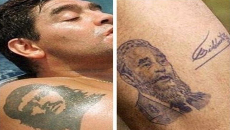 Diego Maradona amaba a Cuba, a Fidel Castro y Ernesto Che Guevara y esa admiración la hizo carne con tatuajes de los respectivos dirigentes en una pierna y en un brazo. Curiosamente el máximo ídolo del fútbol mundial dejó esta Tierra el mismo día que lo hizo el líder de la Revolución Cubana, Fidel Castro. Su muerte acontecida el 25 de noviembre de 2016 conmovió profundamente por entonces a El Diego.