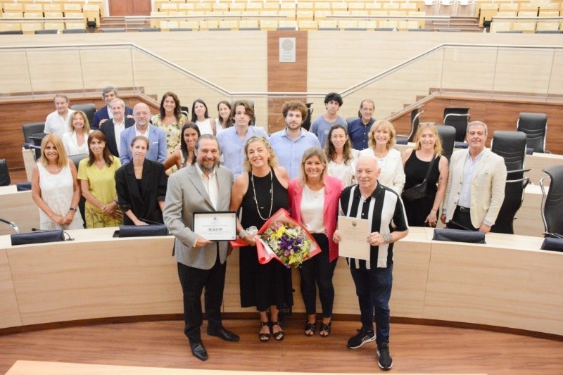 Luego la concejala Irizar le hizo entrega a Andrea y Federico Garrone de la copia del texto legal por el que se la designa Empresa Distinguida; el edil Megna le entregó el diploma y la plaqueta recordatoria y la edila Irizar un ramo de flores.