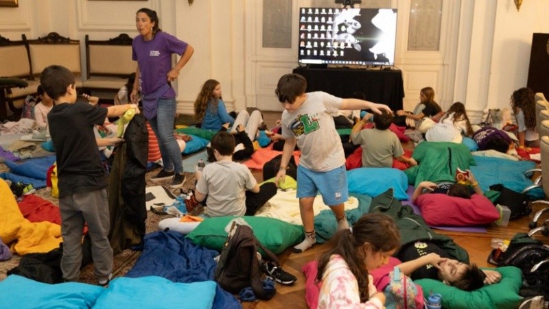 El Palacio de los Leones (Buenos Aires 711) se transformó en la noche del último viernes en el escenario de un campamento para un grupo de 40 niñas y niños que permanecieron en el lugar hasta la mañana de este sábado. La actividad, que contempló distintas acciones, constituyó una edición especial de Aventuras Nocturnas, iniciativa del Consejo de Niñas y Niños de Estación Embarcaderos.