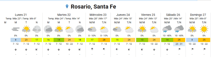 Tras el domingo inestable y lluvioso, Rosario recibió el otoño y llegó con frío. Según el Servicio Meteorológico Nacional la temperatura mínima en las primeras horas de este lunes era de 8 grados y se espera que la máxima supere los 23 grados.