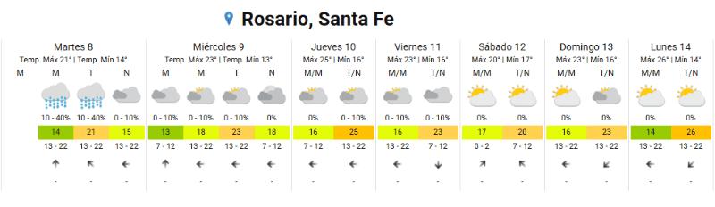 Según el SMN indica que las precipitaciones y/o lloviznas seguirán hasta la tarde de la jornada de hoy. Recién para este miércoles las condiciones climáticas mejorarían con un cielo nublado con temperaturas mínimas de 13 y máximas de 23.