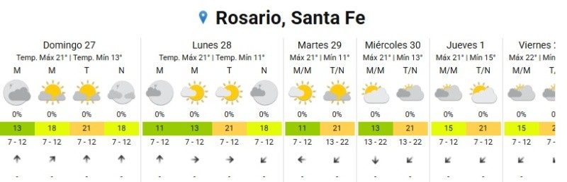 De acuerdo al SMN, este domingo se mantendrá el buen tiempo, pero con un descenso de tempertaura. Las marcas térmicas oscilarían entre los 13 y los 21 grados. En tanto que el cielo se presentará de algo a parcialmente nublado.