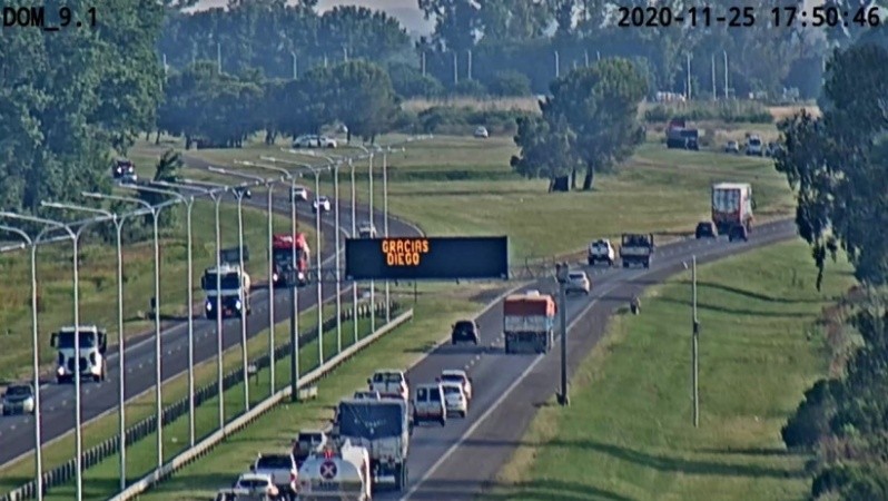 Por su parte, la autopista a Santa Fe exhibió un cartel con la leyenda: “Gracias Diego”.