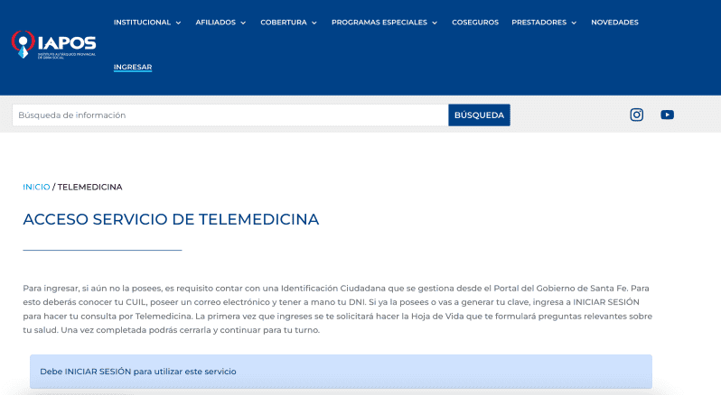 Para acceder desde la web www.iapossantafe.gob.ar, el usuario debe ingresar al botón de telemedicina programada. Desde la aplicación Mi Iapos (disponible en el Play Store / App Store), se ingresa directamente desde el menú inicial.