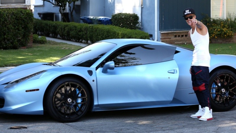 El cantante canadiense Justin Bieber fue sancionado por parte de la casa italiana de vehículos exclusivos, Ferrari, por haber pintado su modelo 458 Italia de color azul neón, algo que prohíbe la empresa en su estándar de uso y mantenimiento de los vehículos de su marca.
