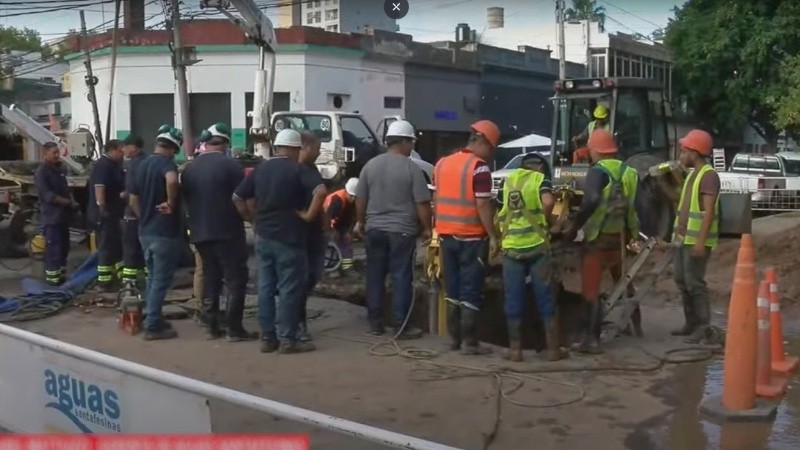 Ese mismo lunes, luego de 14 horas de trabajo de las cuadrillas, fue reparado el caño maestro y frenando el flujo de agua que dejó su rotura en la madrugada del martes. El pozo que quedó en la calle tras la búsqueda del caño por parte de los operarios es de tal tamaño que ocupa toda la intersección inundada, entre Sarmiento y Garay, de la zona sur de Rosario.