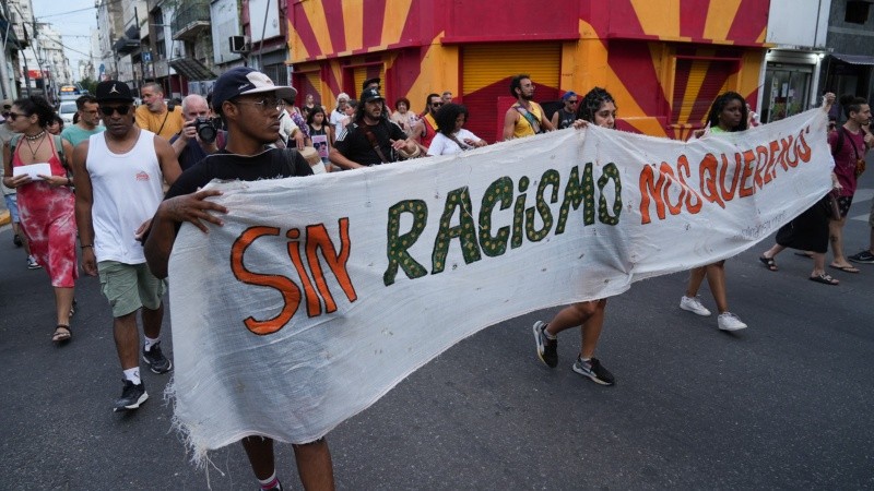 “Señor, señora, no sea indiferente”, grita el grupo central de la marcha que avanza hacia el río. “Ser un pibe afrodescendiente te puede costar la vida”, agrega otro cartel.