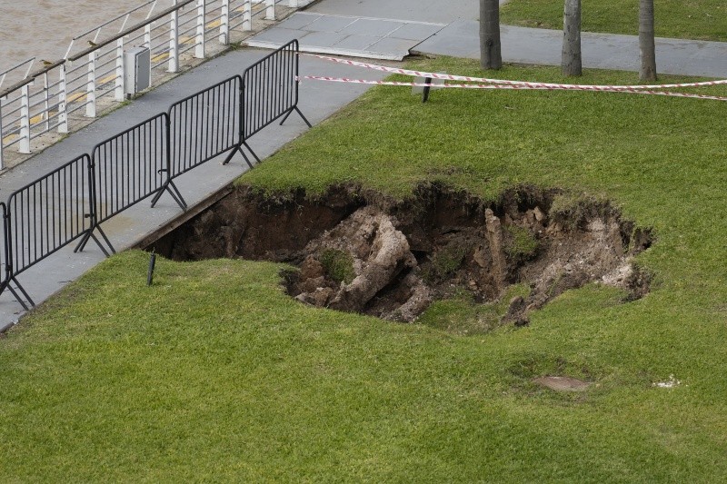 Las fuertes lluvias del fin de semana provocaron un socavón en el muelle de la Estación Fluvial, que fue vallado mientras se preparan las refacciones.