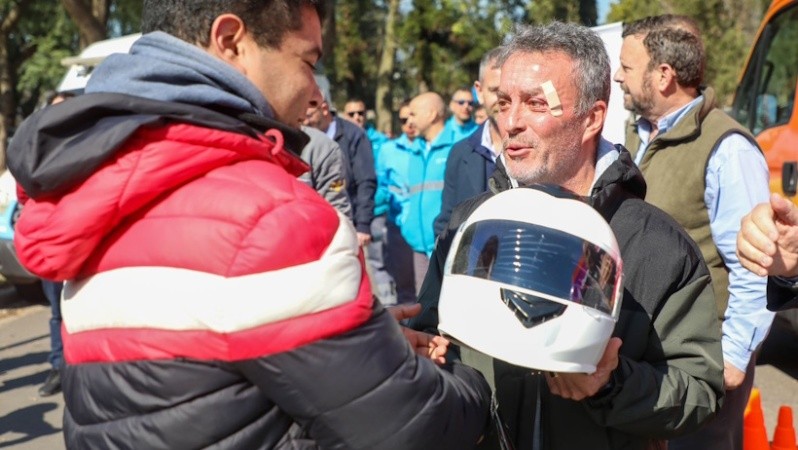 Como cierre de la actividad promovida por la Agencia Provincial de Seguridad Vial, se canjean cascos en mal estado, vencidos y deteriorados por otros nuevos y homologados, a todos los participantes. “Les recibimos los cascos viejos y rotos, a veces sin visera, a veces sin correa para ajustar, y les damos un casco nuevo, homologado, para que lo empiecen a usar a partir de ahí”, dijo Kelman.