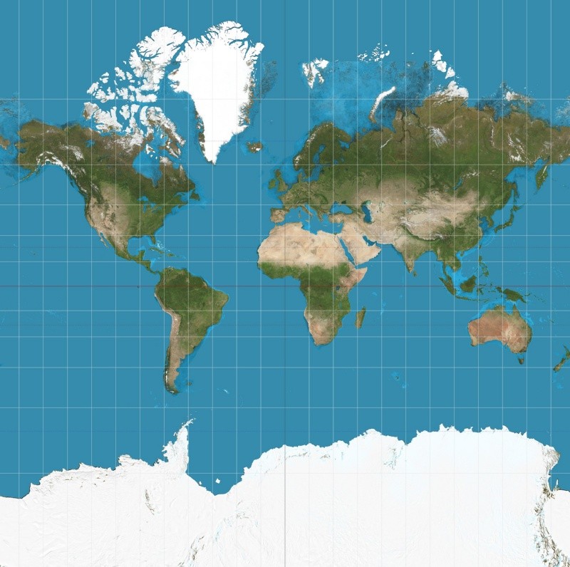 Bajo el esquema de Mercator, países del hemisferio norte, como Estados Unidos, lucen mucho más grandes de lo que son en realidad, mientras que países del hemisferio sur, como los de África, parecen más pequeños.