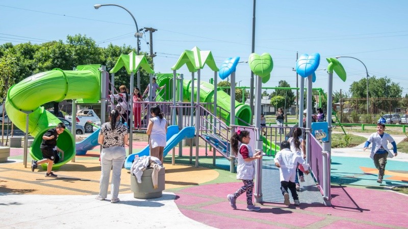 El titular del Ejecutivo local se refirió al espacio renovado como "un parque lineal, porque que sigue la línea del ferrocarril", y precisó: "Pudimos hacer un sector de juegos para los chicos, también un playón deportivo y detrás hay una canchita, o sea que nos quedó un gran espacio para la recreación, para el encuentro, para organizar actividades".