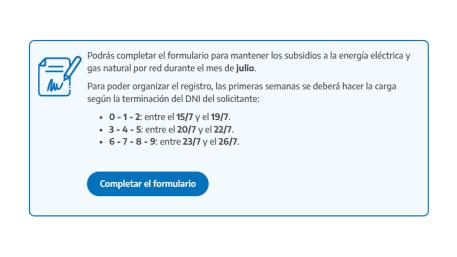 La quita escalonada de subsidios empezará a regir desde agosto de este año y hasta el 26 de julio el ingreso al formulario estará esquematizado por número de documento. En los últimos días el sistema quedará abierto a todos aquellos que no hayan podido completarlo en su momento: