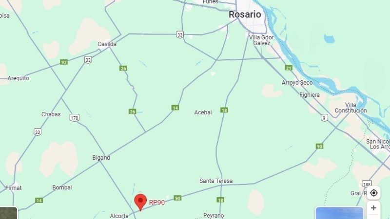 Quienes transiten por la Ruta N° 90 con destino a la ciudad de Rosario, deberán salir de Venado Tuerto por Ruta Nacional N.º 8 hacia la “Curva Pastorino” para luego, en el cruce entre la RN N.º 8 y la RP N.º 90 doblar hacia Chapuy. Allí se atravesará las localidades de Elortondo, Melincué, Carreras, Alcorta y Máximo Paz para luego continua. hasta llegar a la segunda rotonda de Santa Teresa donde se deberá girar hacia la izquierda con el objetivo de tomar la Ruta Provincial N.º 18, donde luego se transita en dirección a Pueblo Esther para ingresar a Rosario por zona sur, ascendiendo a circunvalación a la altura de calle Ovidio Lagos.