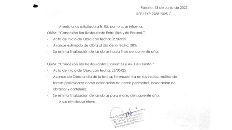 En la última sesión del Concejo Municipal antes del receso invernal, el Ejecutivo respondió un pedido de informes presentado en enero sobre el avance de las obras. En el escrito reconocen que existen demoras por parte de las empresas que ganaron la concesión y que recién podrían inaugurar entre diciembre y marzo del año próximo.