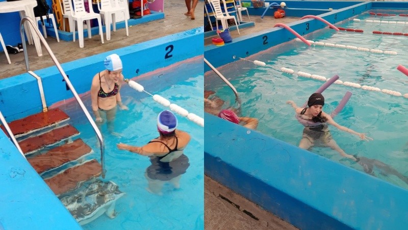 Comenzaron con cuatro horas semanales y actualmente, con 20 personas, dictan ocho, con casi todos los cupos llenos en los distintos grupos. Las clases se dividen en natación y kinesio en el agua.