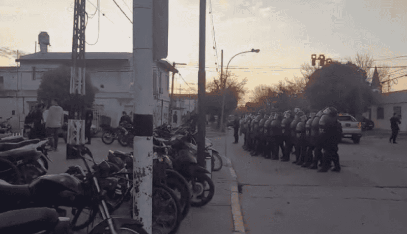 De forma repentina, efectivos del cordón policial comenzaron a disparar balas de goma hacia los hinchas de Unión que permanecían en la puerta de la institución. El estallido de los disparos provocó el desconcierto y la reacción inmediata de la gente, que respondió arrojando piedras y botellas, mientras exigían a gritos que la policía se retirara para poder desconcentrar en paz.