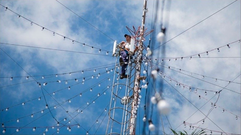 La Dirección de Alumbrado Público de la Municipalidad avanzaba este jueves con la instalación de las 3 mil luces led que brillarán del 8 de diciembre al 8 de enero próximos.