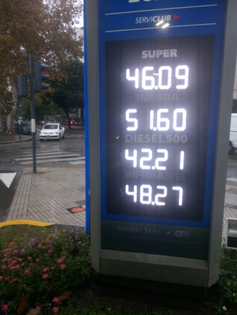 Por ejemplo, en la YPF de 3 de Febrero y bulevar Oroño los nuevos precios eran: nafta súper $46,09; nafta premium $51,60; diésel común $42,21; y diésel premium $48,27.