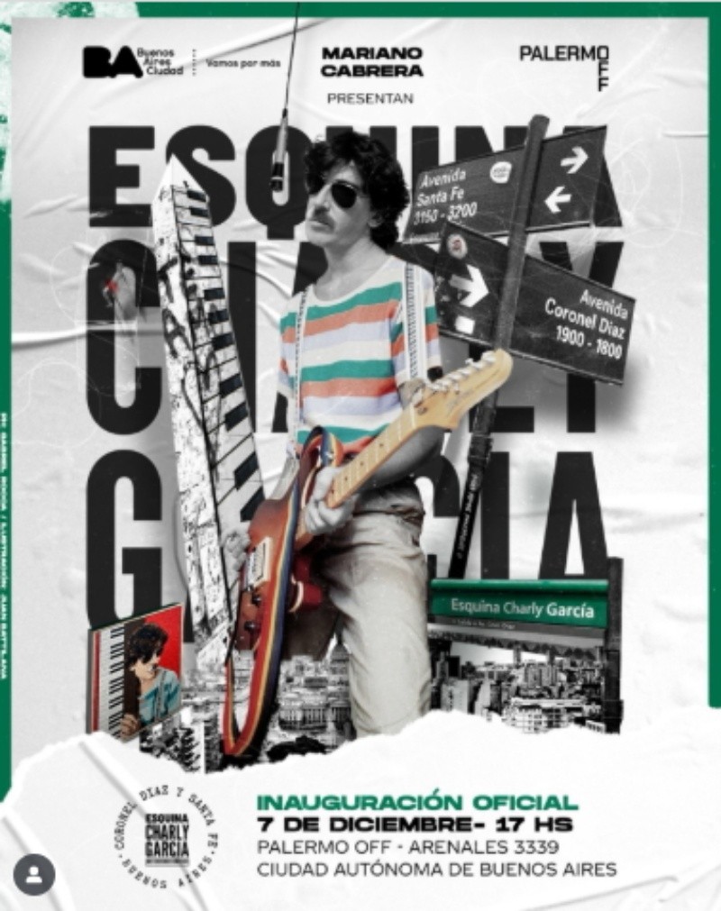 El próximo domingo 7 de diciembre, a las 17, la Ciudad de Buenos Aires realizará un homenaje especial a Charly García con la inauguración oficial de la “Esquina Charly García Buenos Aires”, una iniciativa que busca replicar el tributo que Nueva York dedicó al músico en 2023.
