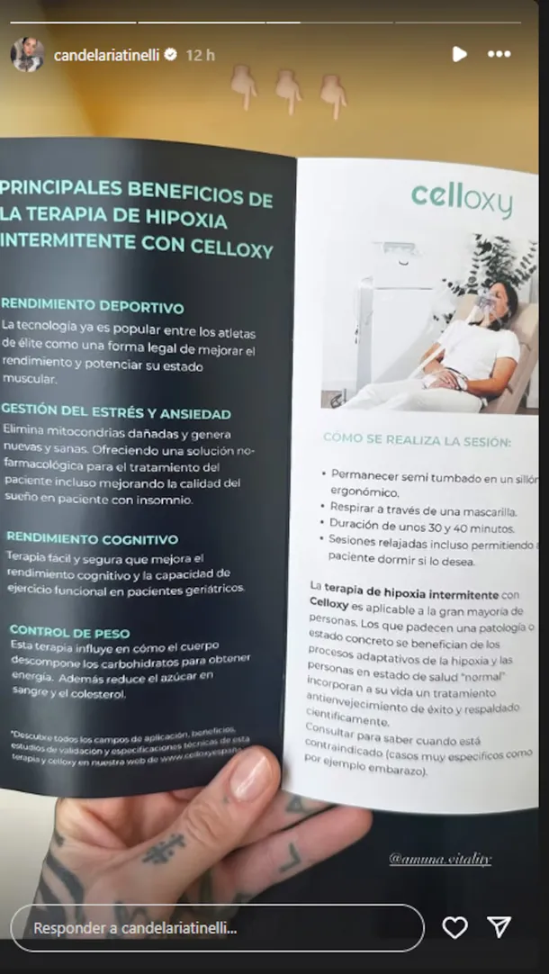 Candelaria Tinelli volvió a generar polémica en las redes sociales, al anunciar que comenzó la terapia de hipoxia intermitente.