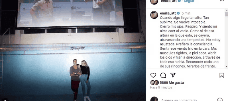 A través de un posteo que compartió en su cuenta oficial de Instagram, escribió: "Cuando algo llega tan alto. Tan sublime. Se vuelve intocable. Cierro mis ojos. Respiro. Y siento mi alma caer al vacío. Como si de esa altura en la que está, se cayera, atravesando una tempestad. No estoy asustada. Prefiero la consciencia. Sentir ese viento frío en la cara. Mis músculos rígidos, la piel seca. Abrir los ojos y fijar la dirección, a través de toda esa niebla".