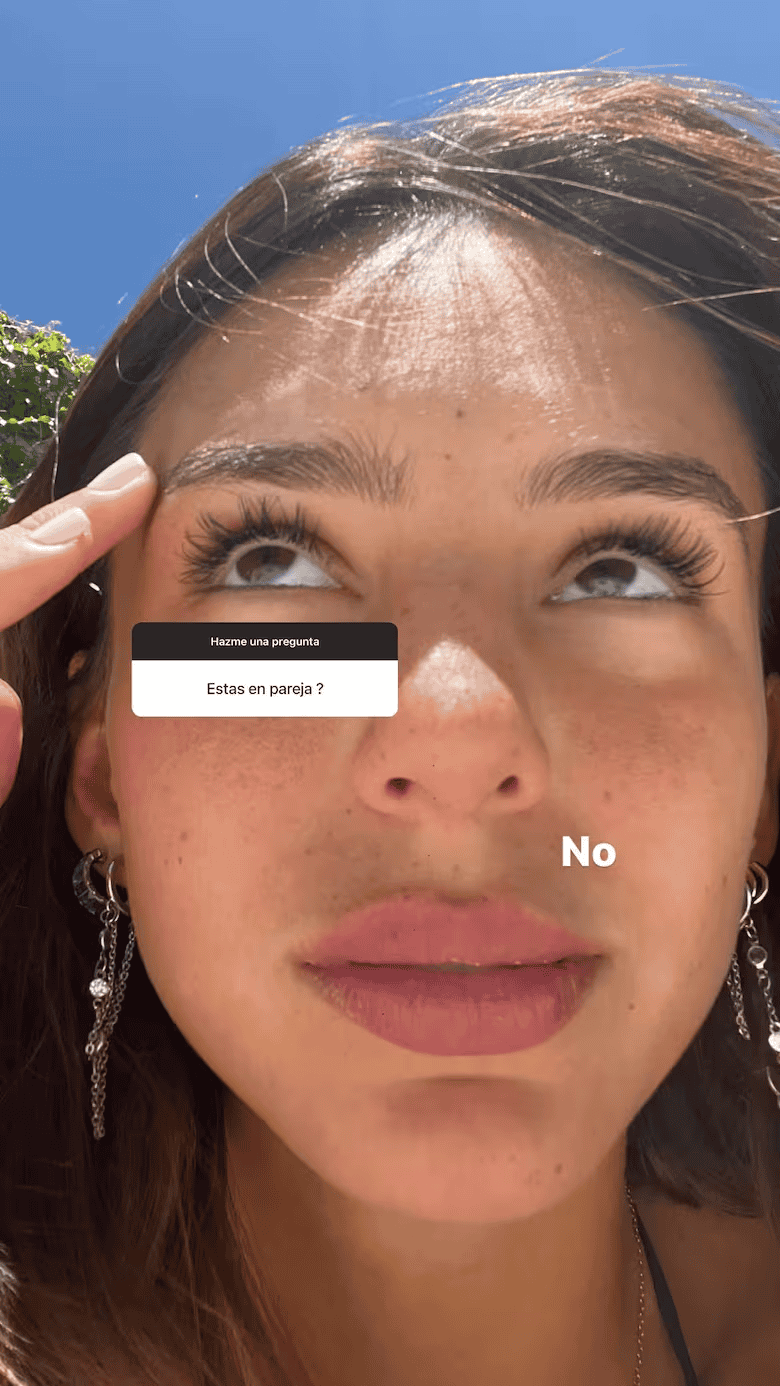 A través de la red social de la camarita, quien fue la hija menor de Marcelo Tinelli y Paula Robles hasta la llegada de Lorenzo, compartió un box de preguntas y un usuario le consultó: "¿Estás en pareja?". A lo que la modelo respondió "no", junto a una selfie.