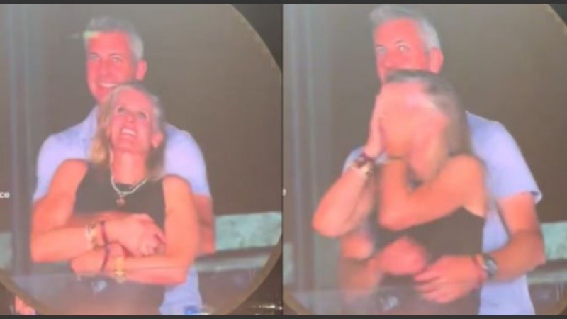 La escena muestra al líder de la banda, señalando la imagen de ambos mientras dice: “Oh, miren a esos dos”. Pero al darse cuenta de que estaban siendo exhibidos en las pantallas, se soltaron, intentaron taparse la cara y se agacharon tratando de ocultarse entre el público. “O están teniendo una aventura o son muy tímidos”, agregó el músico.