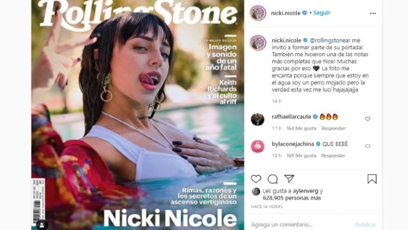 “Rolling Stone Argentina me invitó a formar parte de su portada! También me hicieron una de las notas más completas que hice!”, escribió Nicki junto a la tapa.