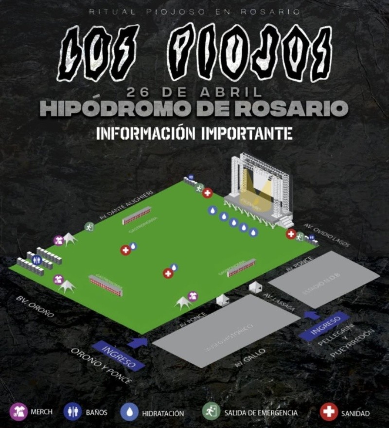 Desde la producción se informó que las puertas del predio se abrirán a las 17, y que los ingresos habilitados son los de Pellegrini y Pueyrredón, por avenida Lassaga, y el de bulevar Oroño y Ponce.