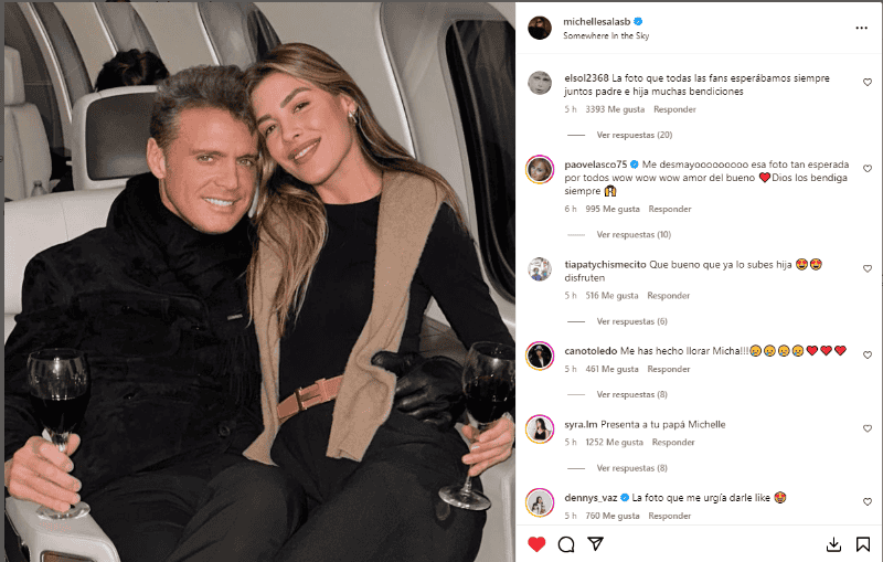 La reconocida modelo, Michelle Salas, hija de Luis Miguel, publicó por primera vez una foto con su padre. En la imagen más esperada por los fans del Sol de México, se puede ver cómo posan en un avión privado.