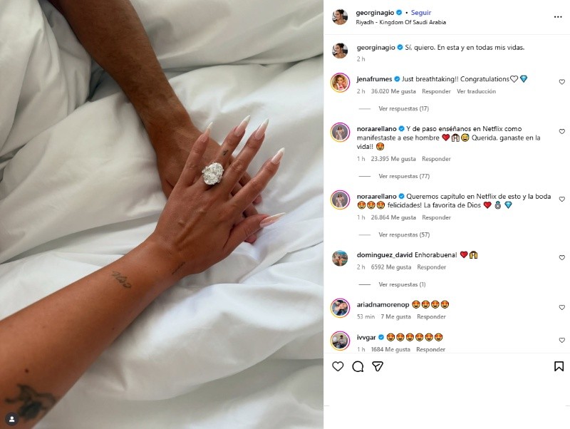 “Sí, acepto. En esta y en todas mis vidas”, escribió Georgina junto a la imagen.