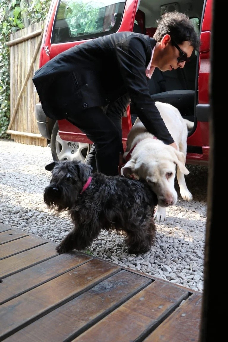 Mulata y Branca, los perros de la pareja, no solo participaron en la ceremonia sino que además fueron trasladados hasta el lugar en una camioneta especialmente acondicionada para ellos.