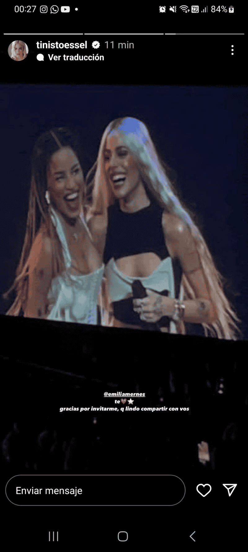 La “triple T” fue convocada para cantar una de las canciones de .mp3, álbum de Emilia que consagró a la ex-Rombai como una de las figuras más renombradas de 2023. En ese disco, Tini aparece en La_Original.mp3 y esa fue la canción que compartió con Mernes este viernes.